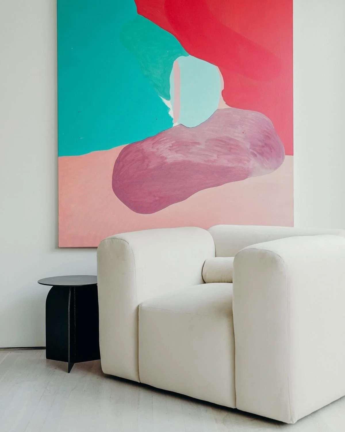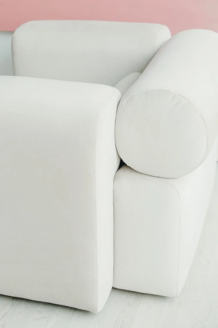 A deep modular lounge chair with wide set arms and a low bolster back. A small interior bolster sets the perfect pitch.