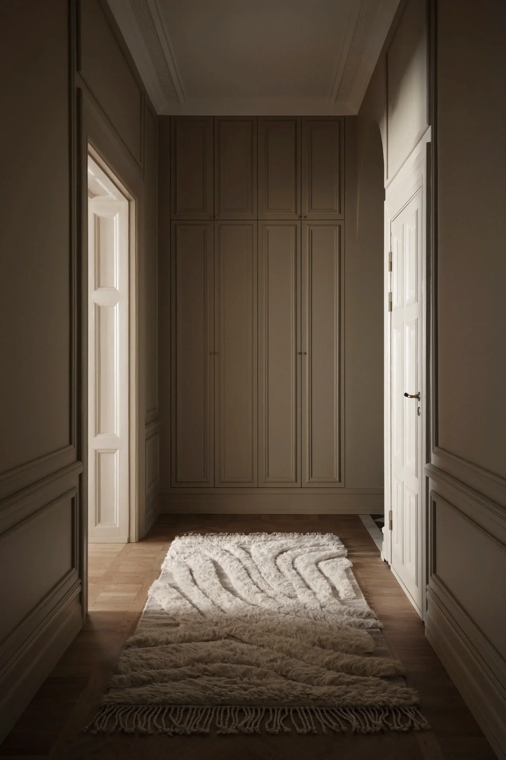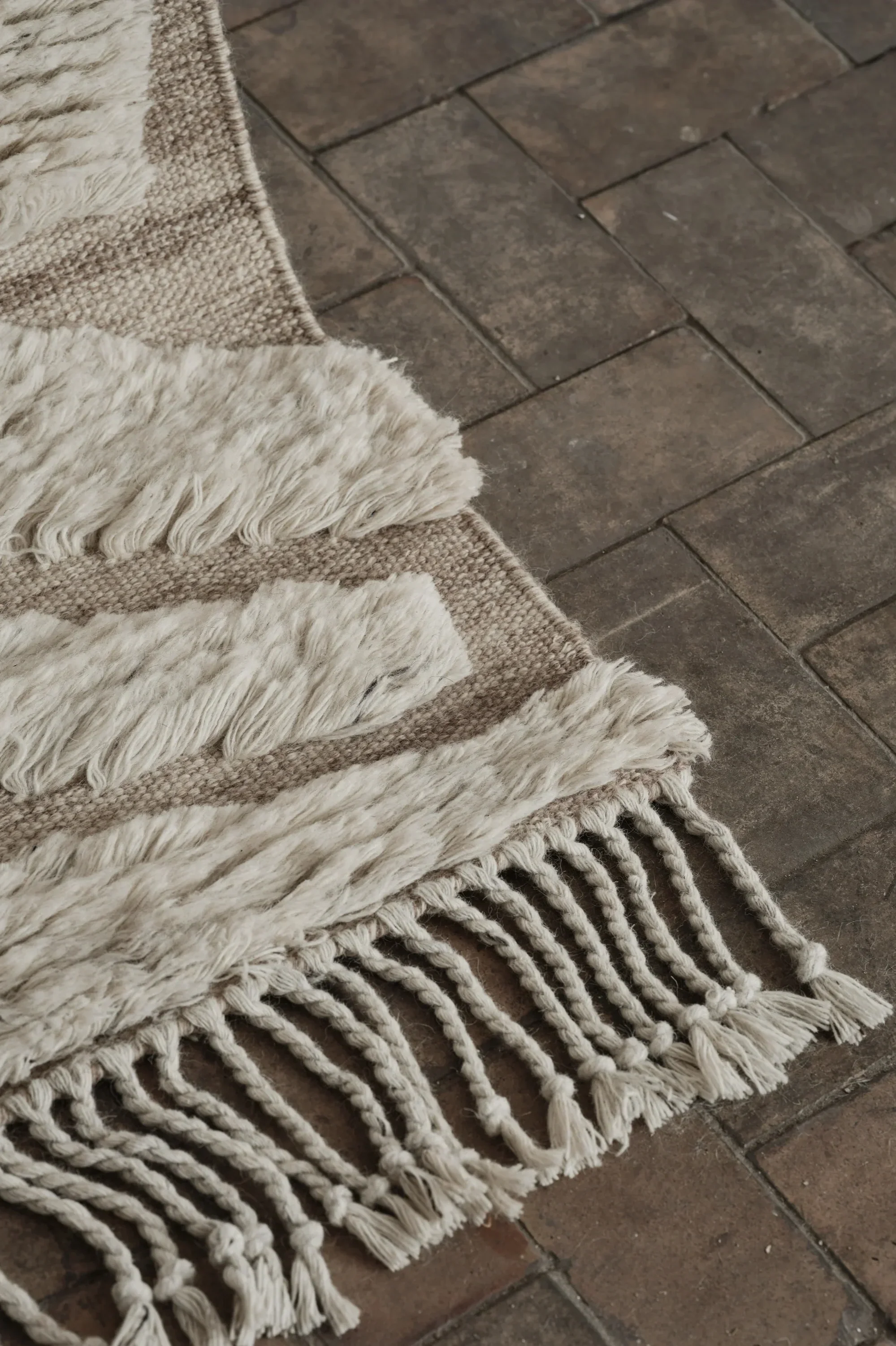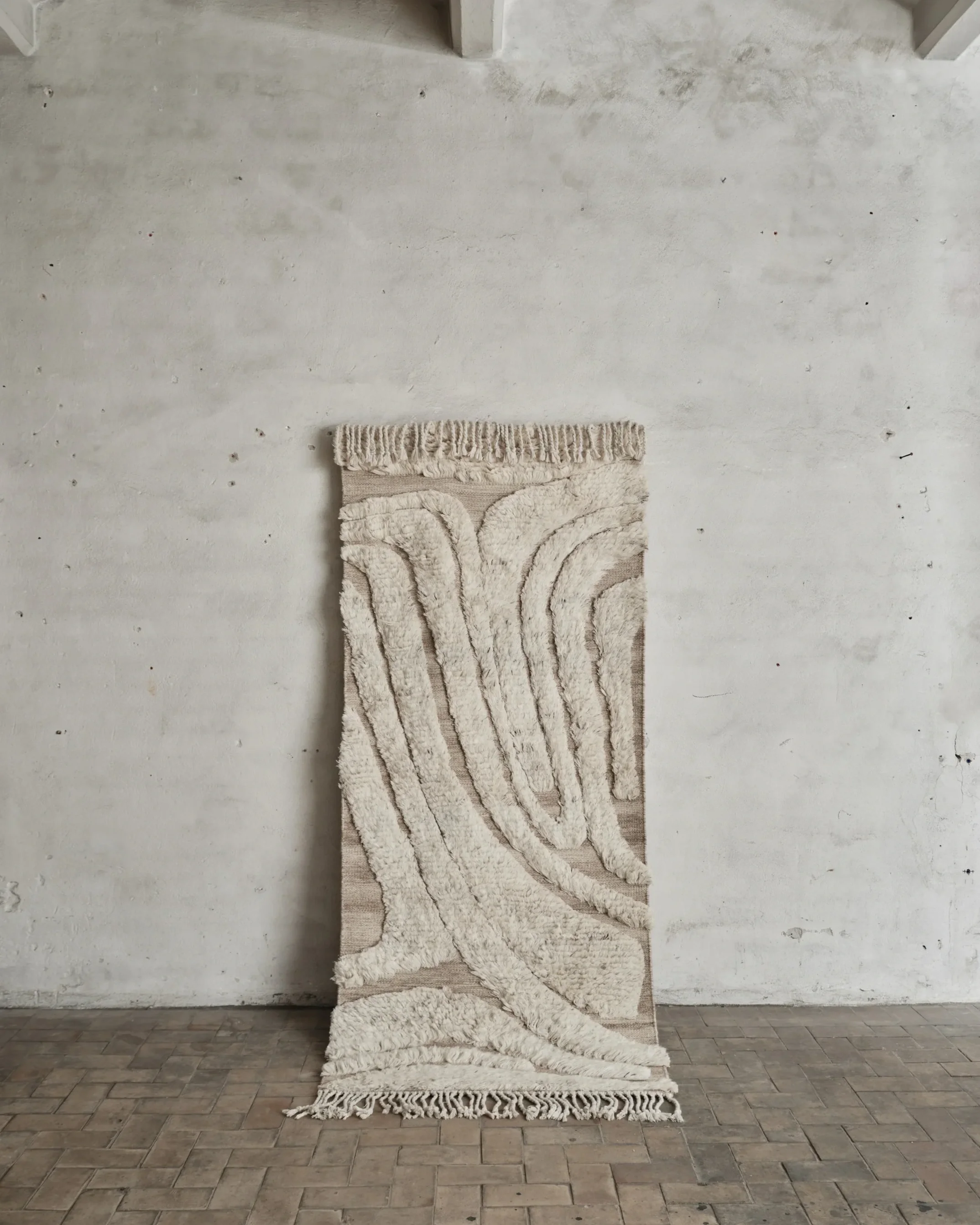 Colonnade no.01 is designed with a soft irregular pattern that creates a vivid and intriguing feel. Its long fringe-edge elevates the look and adds and artistic detail.