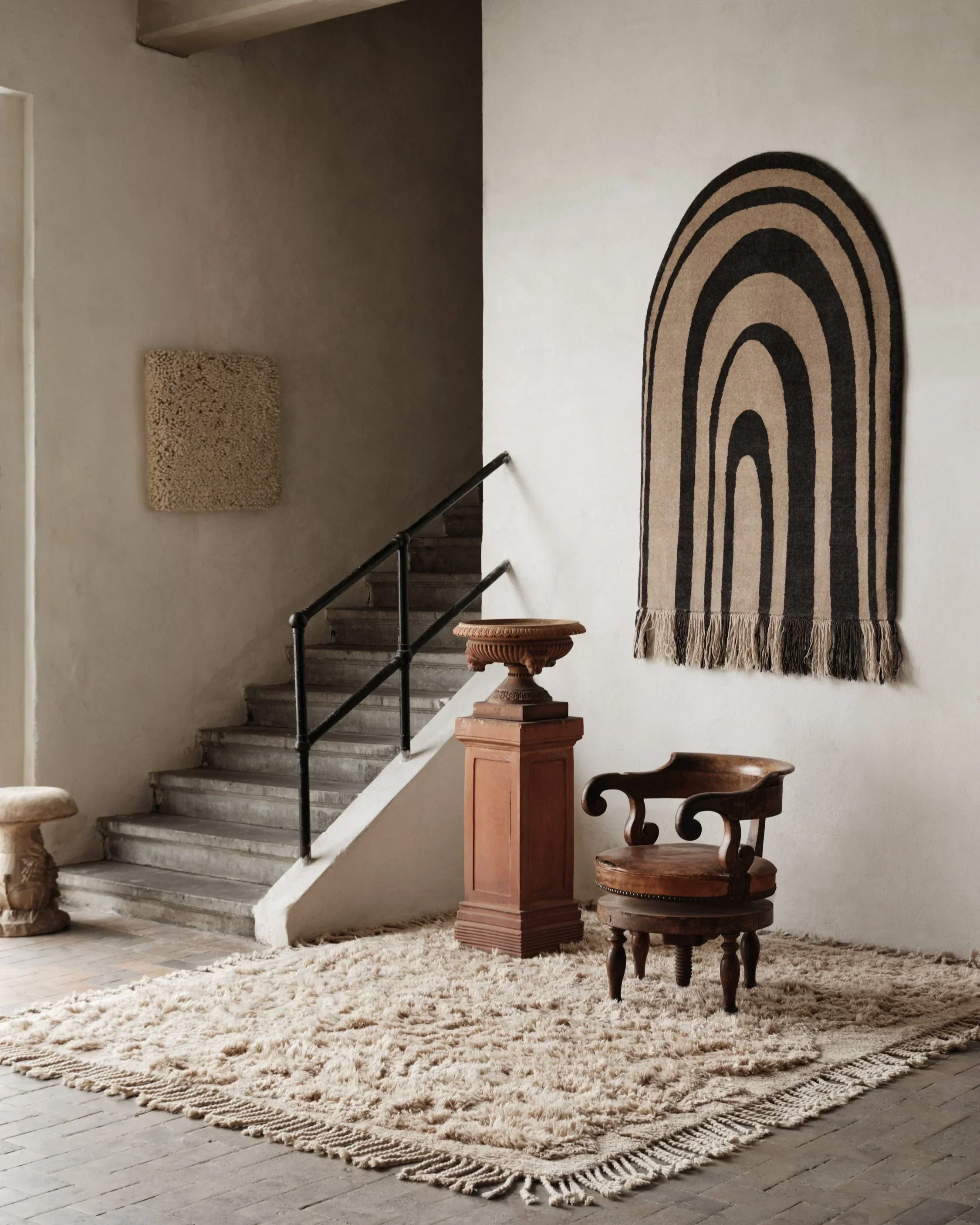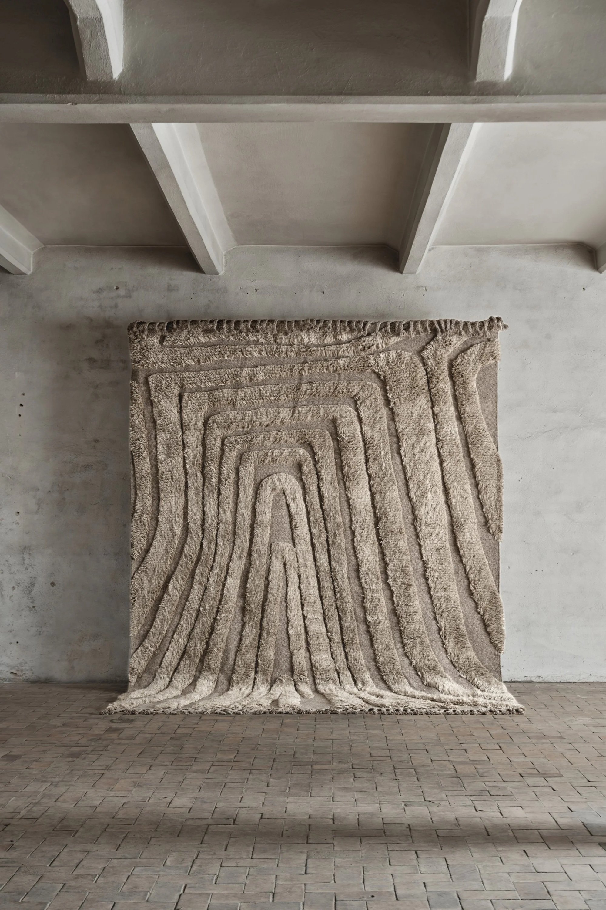 No.13 is fully hand-knotted and sports a hand cut pattern. The twisted wool fringes along all sides of the rug are a striking emphasis on its artistic expression.