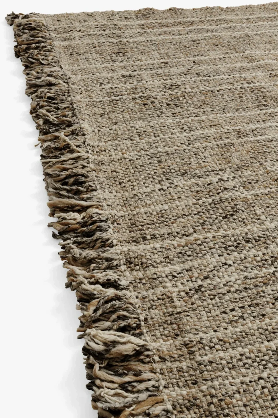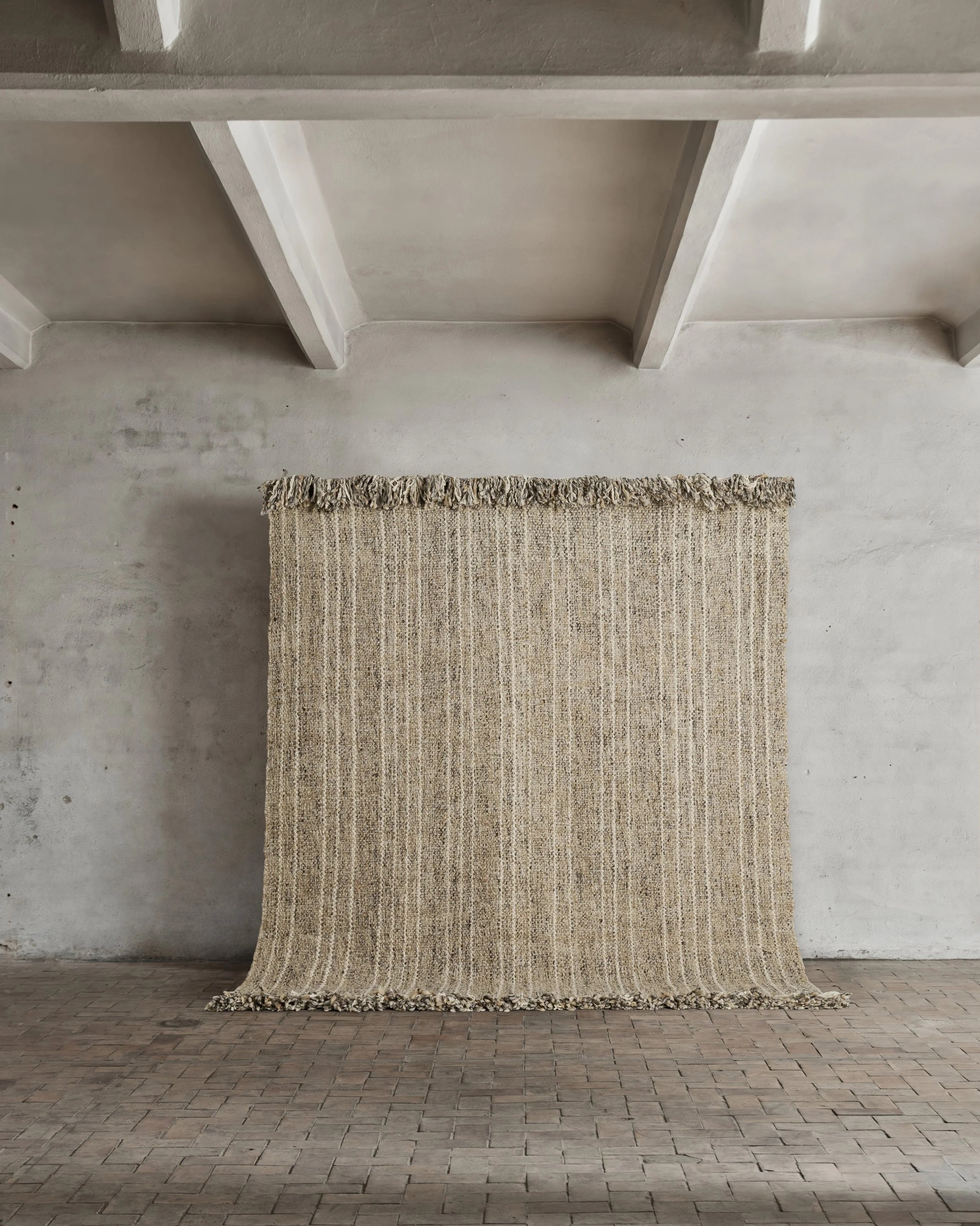 Rug No.20 is a hand-woven wool rug with a mid beige melange foundation with a soft sandy shaded stripe, creating a harmonious and delicate effect.