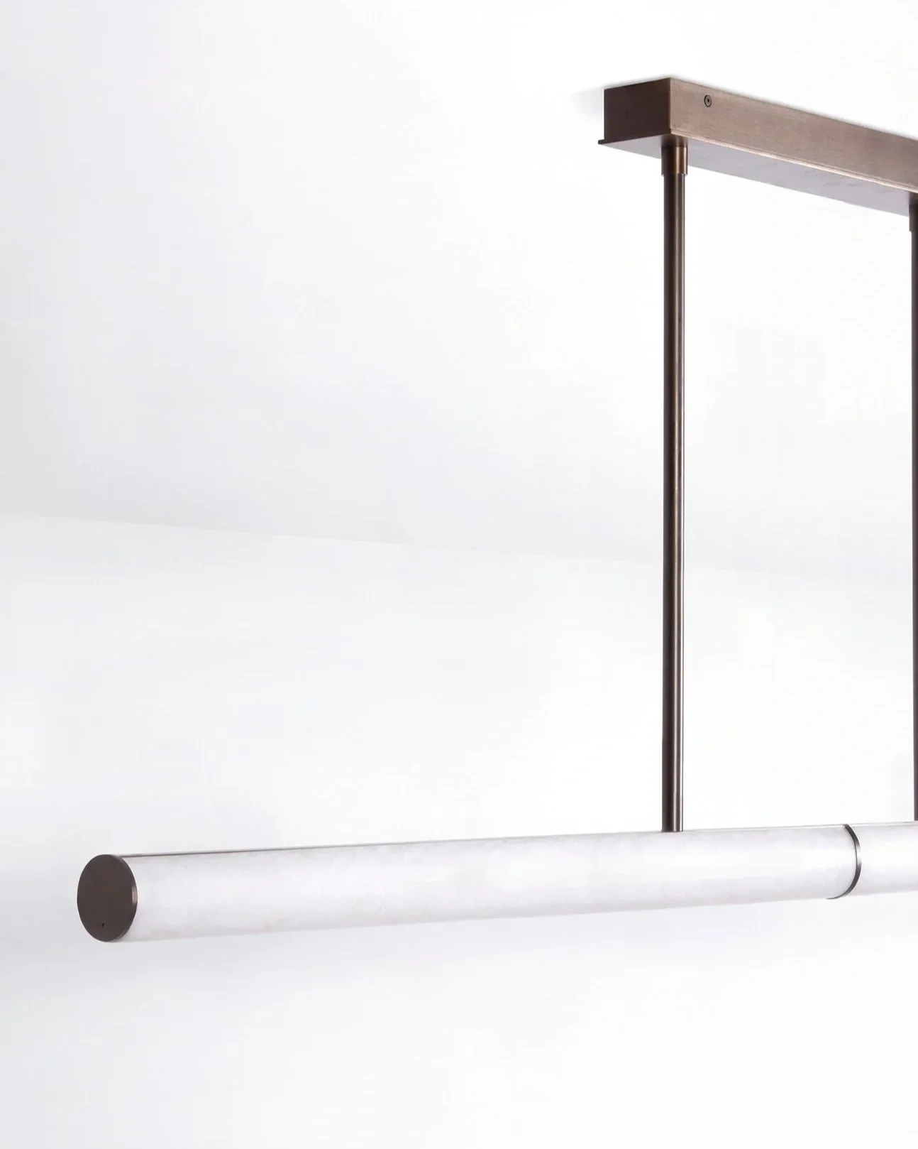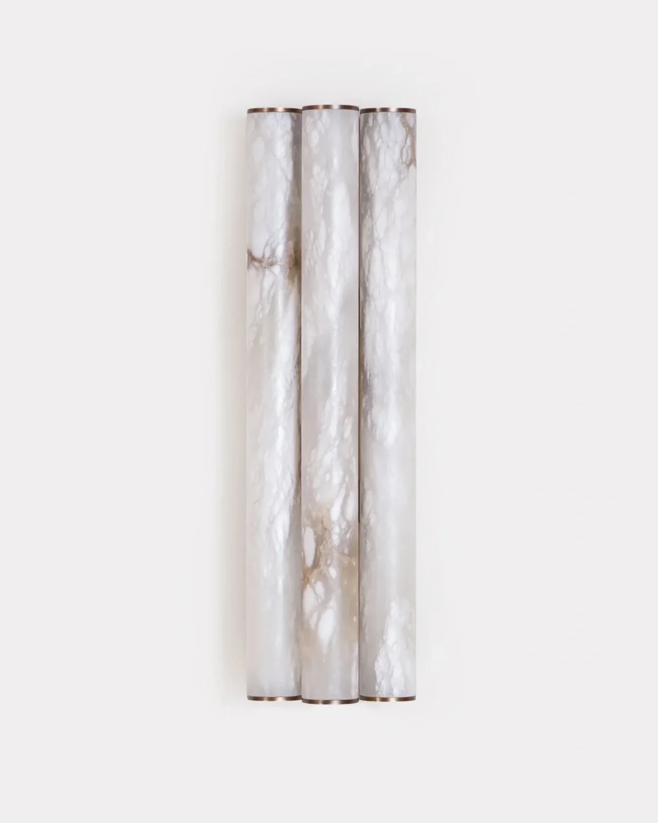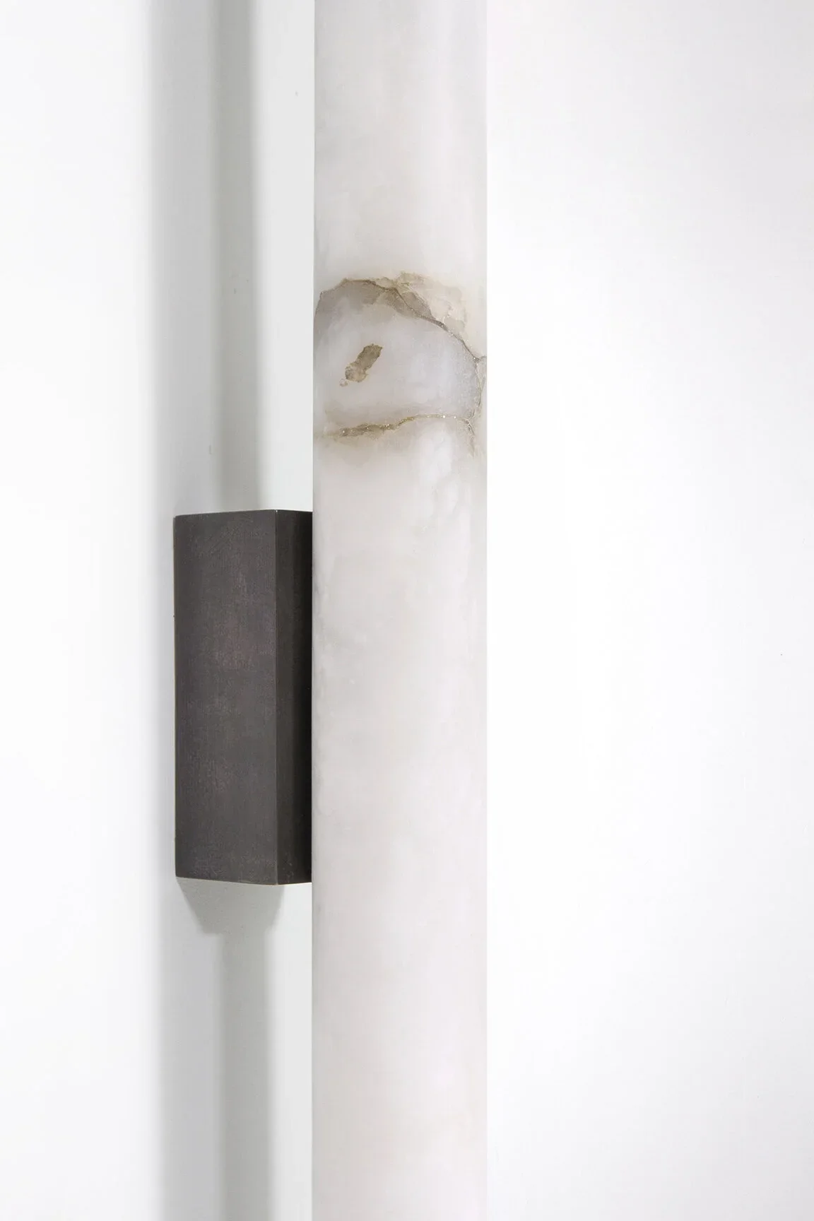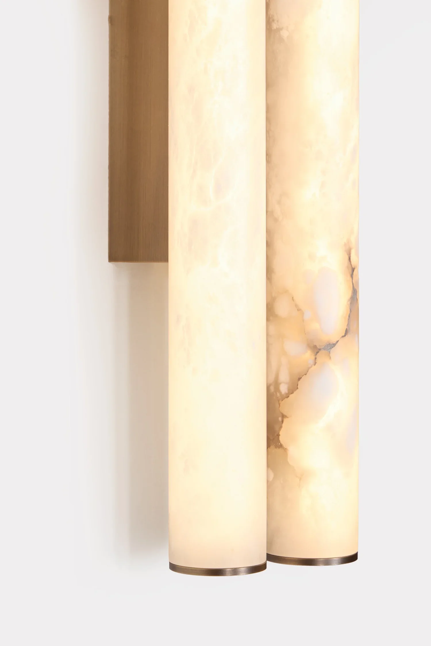 Pendant and sconce in alabaster with a patinated brass structure. Each piece is numbered and signed.