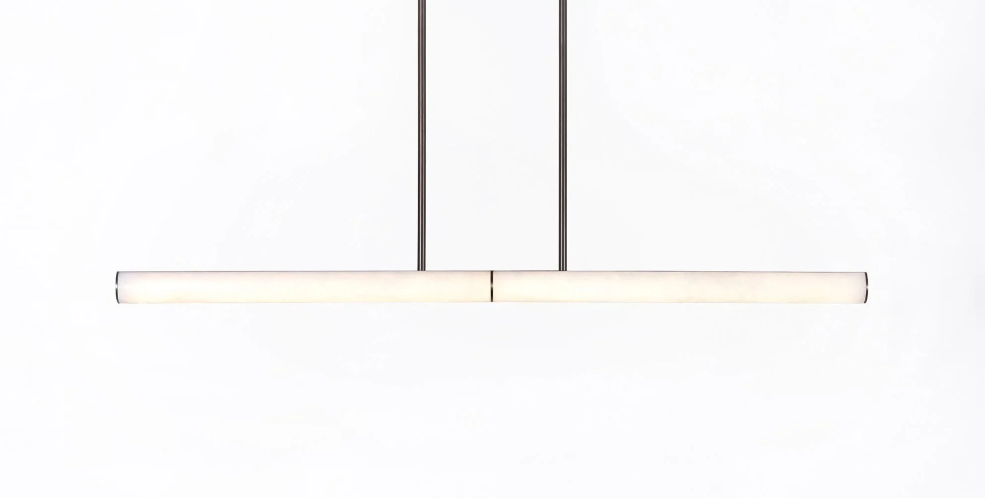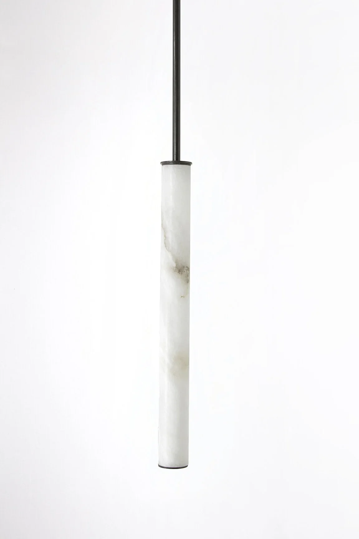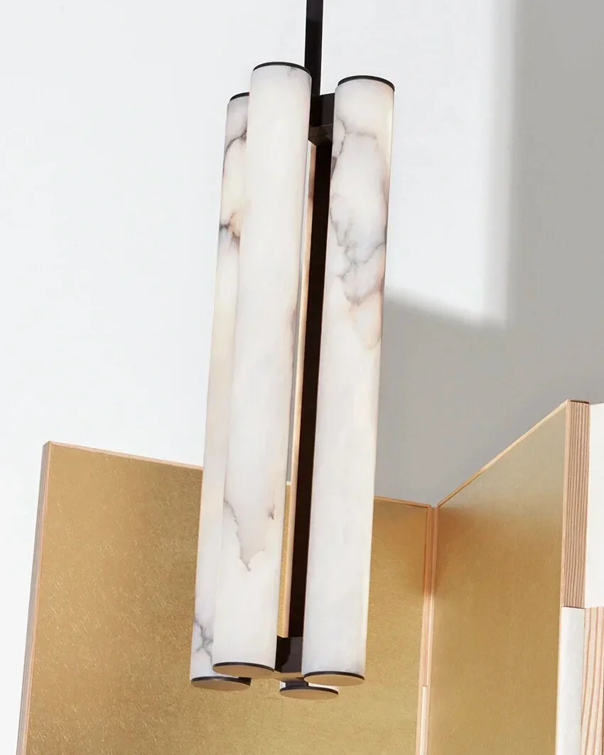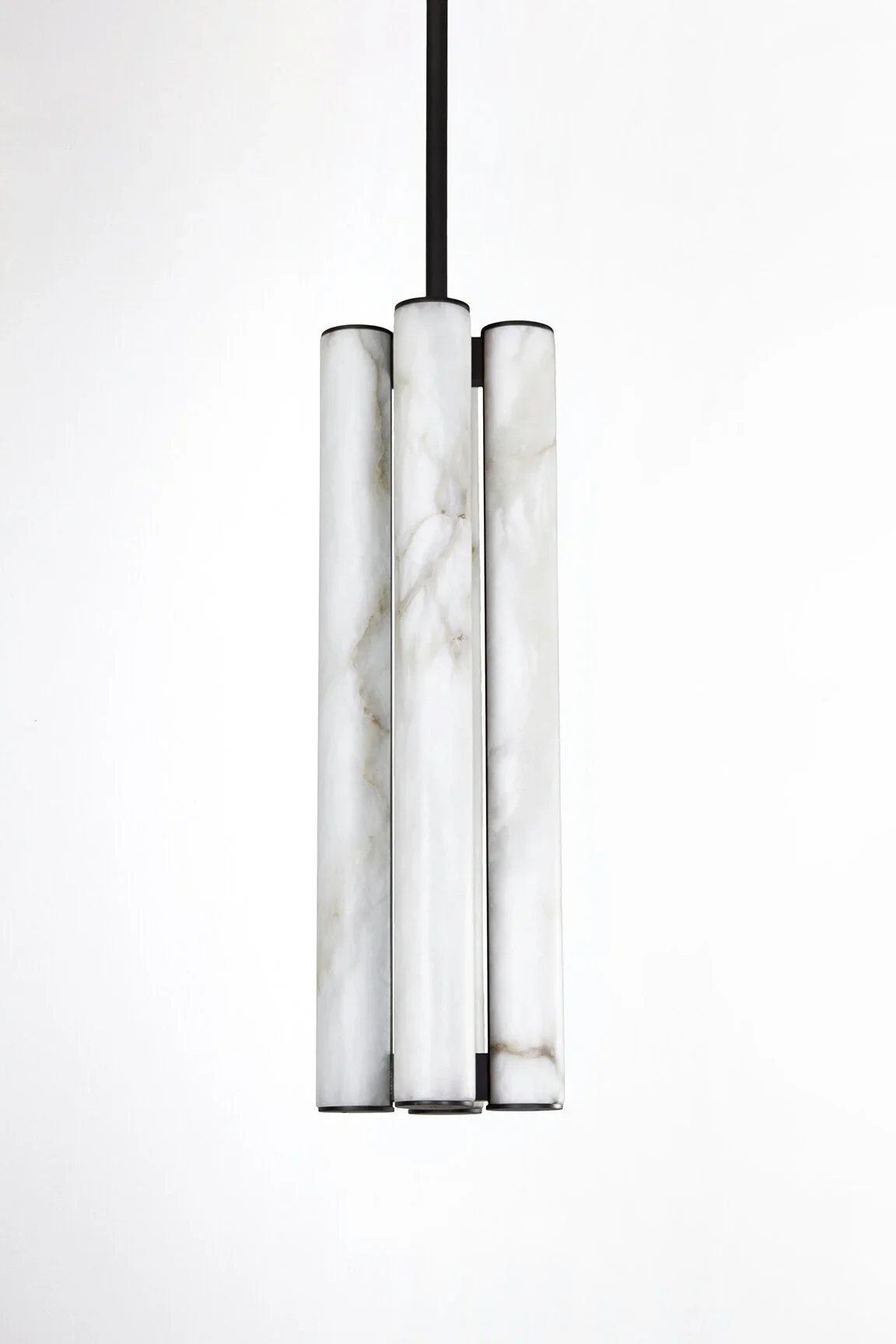 Pendant and sconce in alabaster with a patinated brass structure. Each piece is numbered and signed.