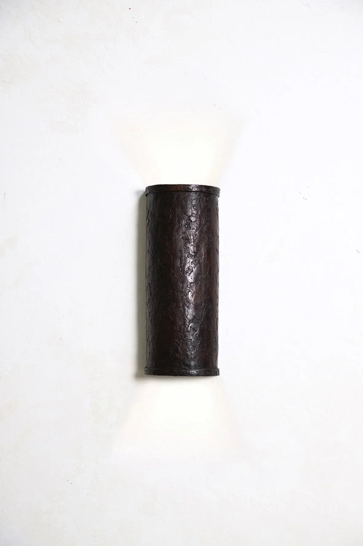 A series of lost wax cast bronze sconces that reveal a handmade texture. Illuminates both from above and below.