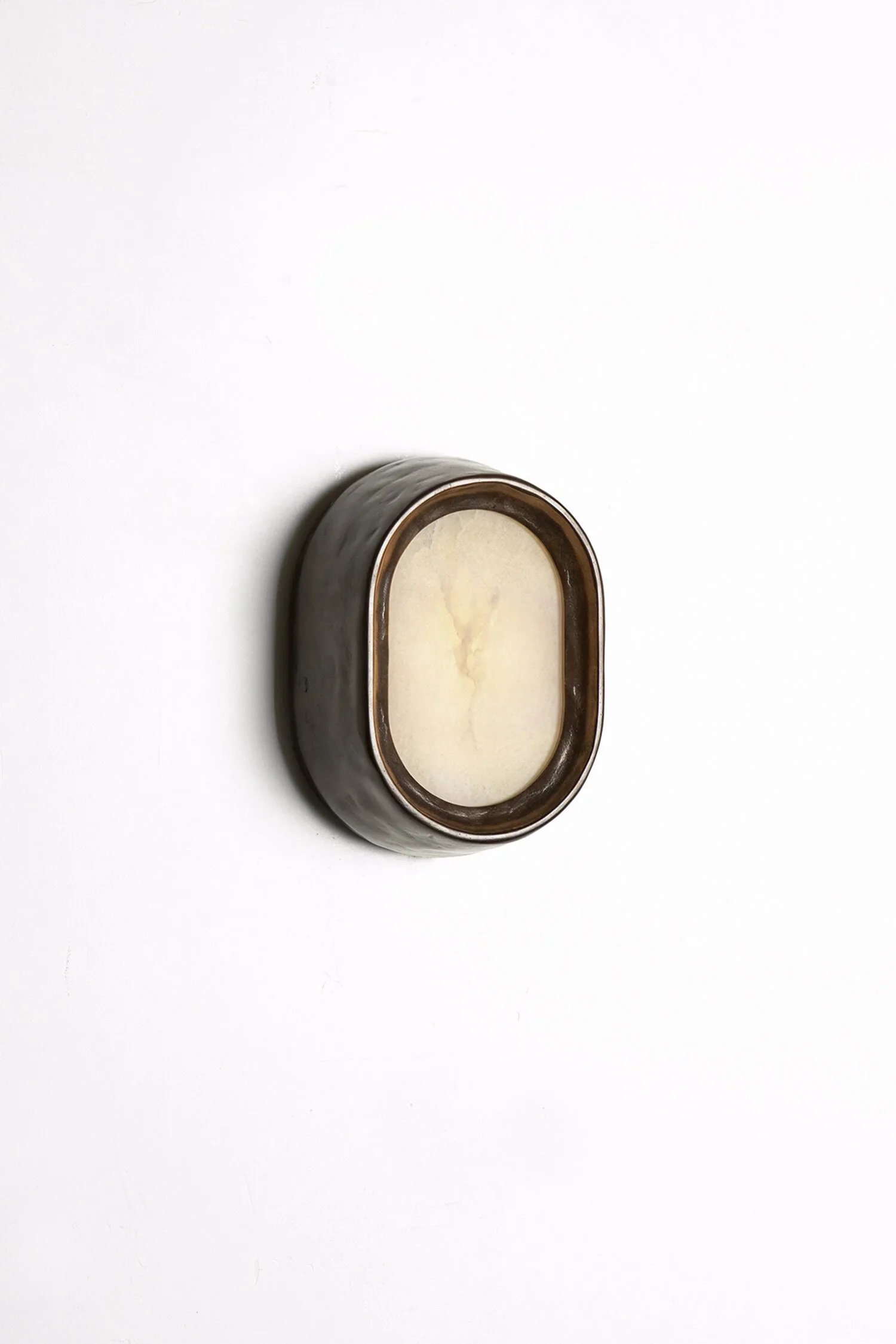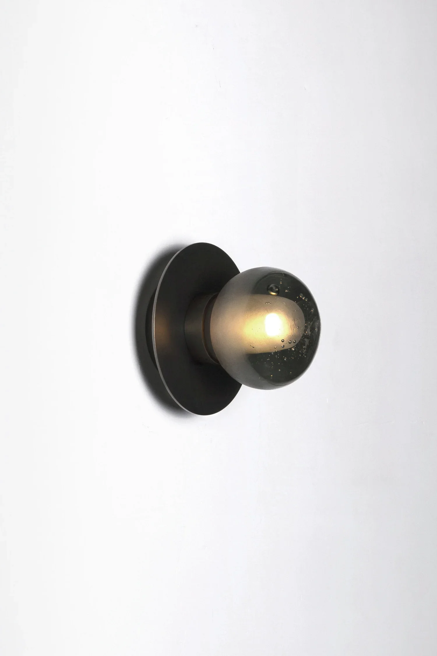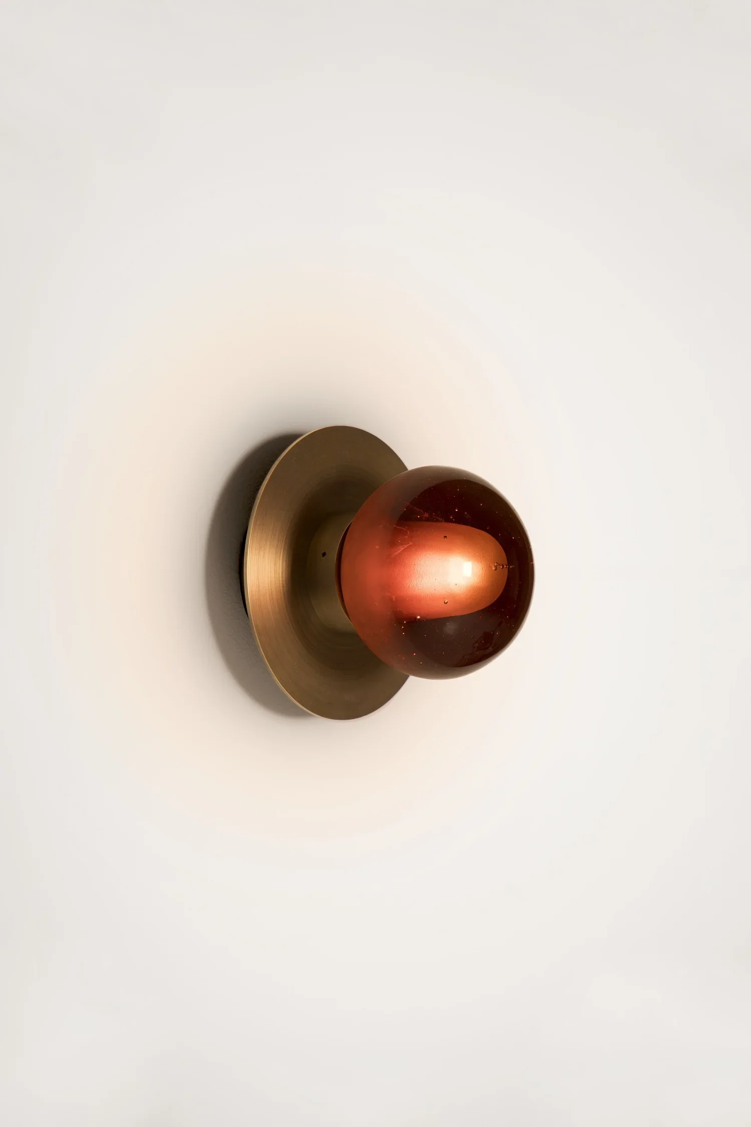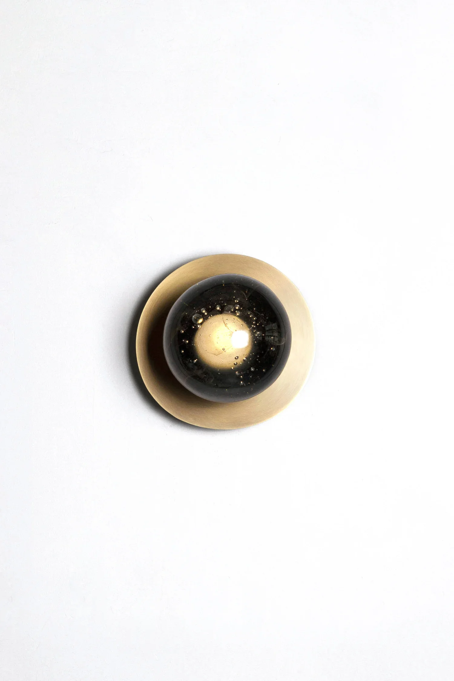 Sconce in lost-wax cast glass, patinated brass structure. Each piece is numbered and signed.