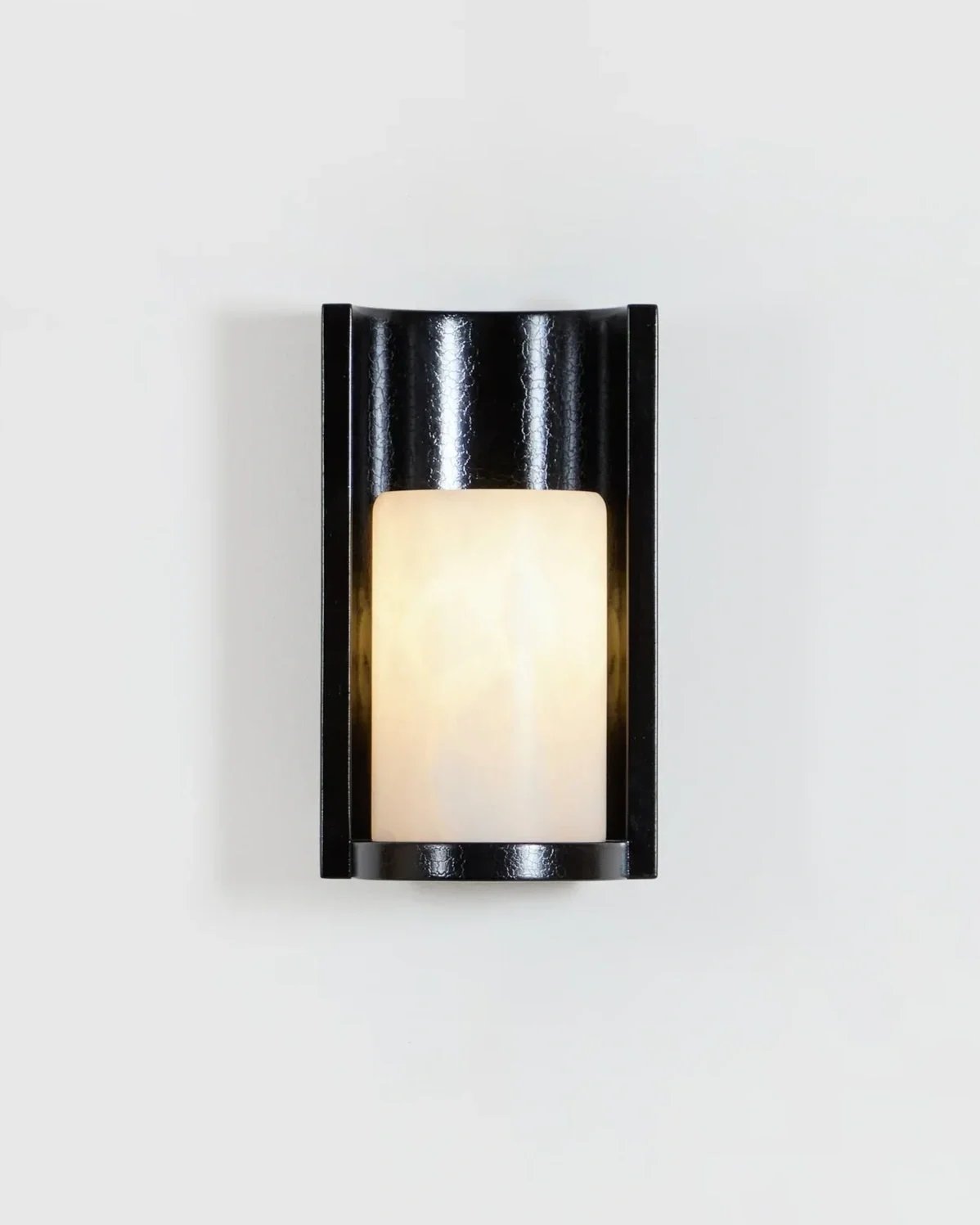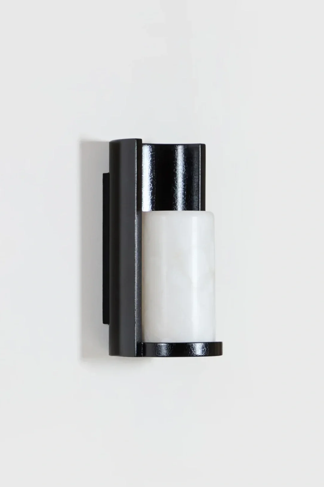 Japanese urushi lacquer and alabaster wall sconce. Each piece is numbered and signed.