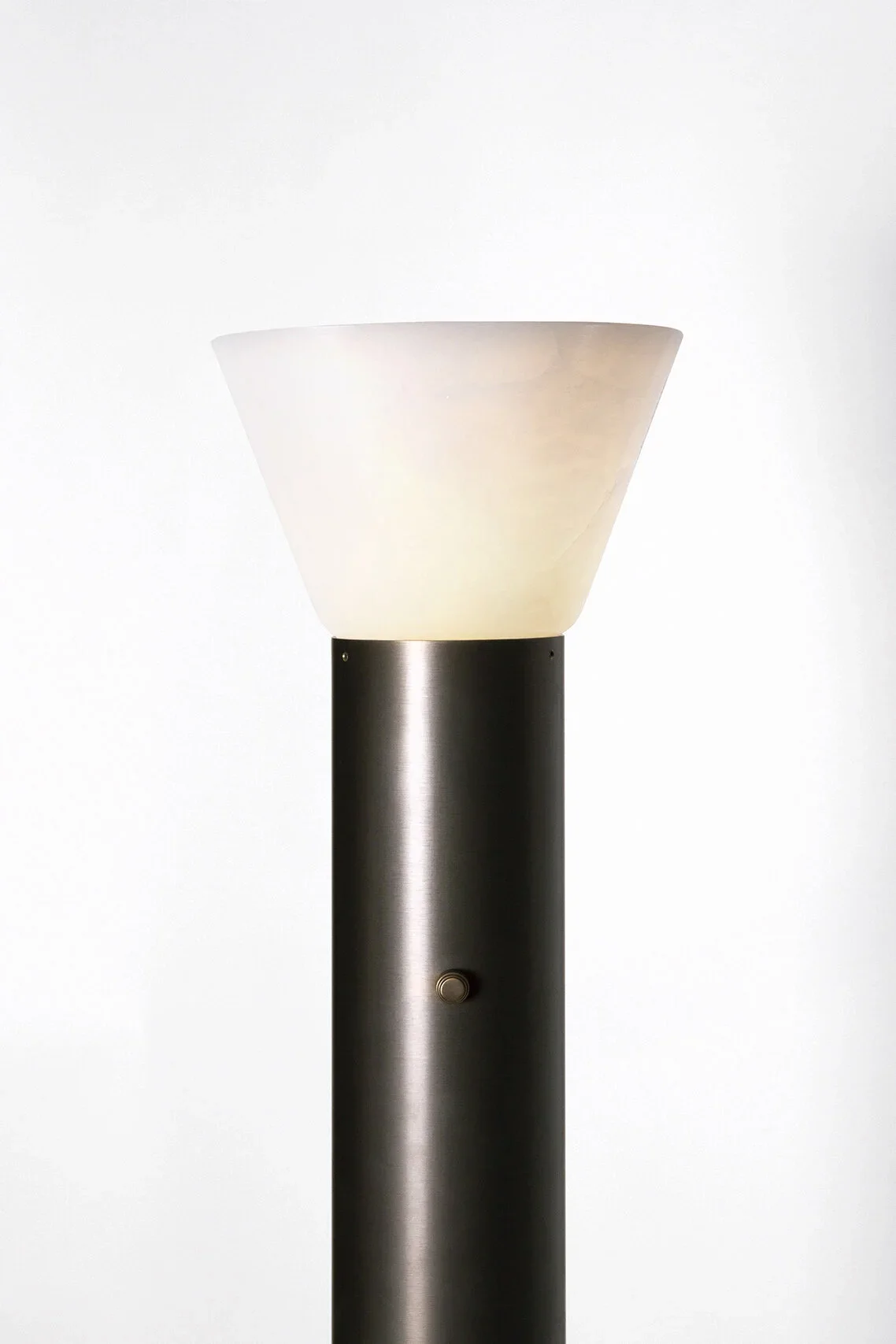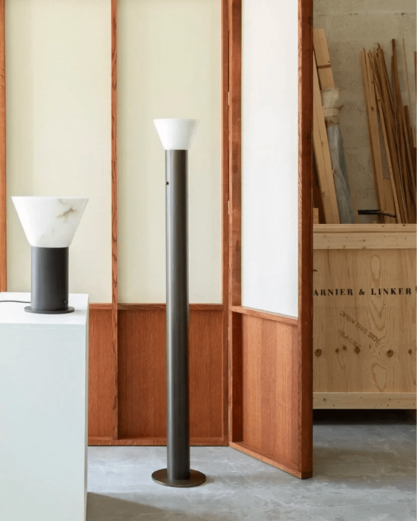 By combining an alabaster cone and a patinated brass cylinder, Lara revisits pedestal like a sculpture installed on top of a round column. It comes in table lamp and floor lamp.
