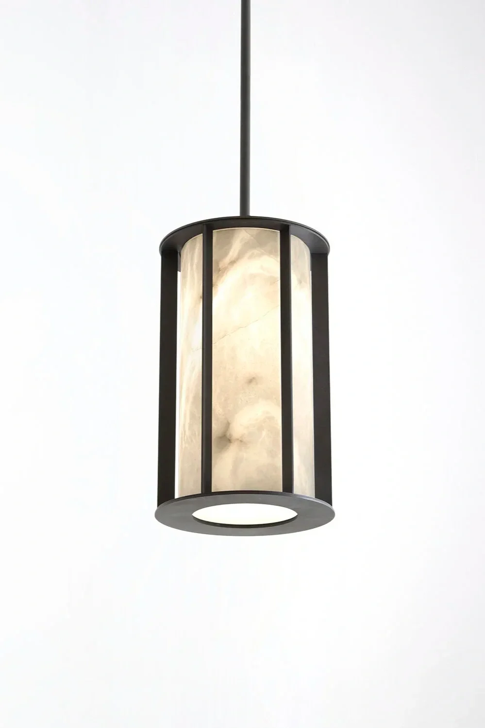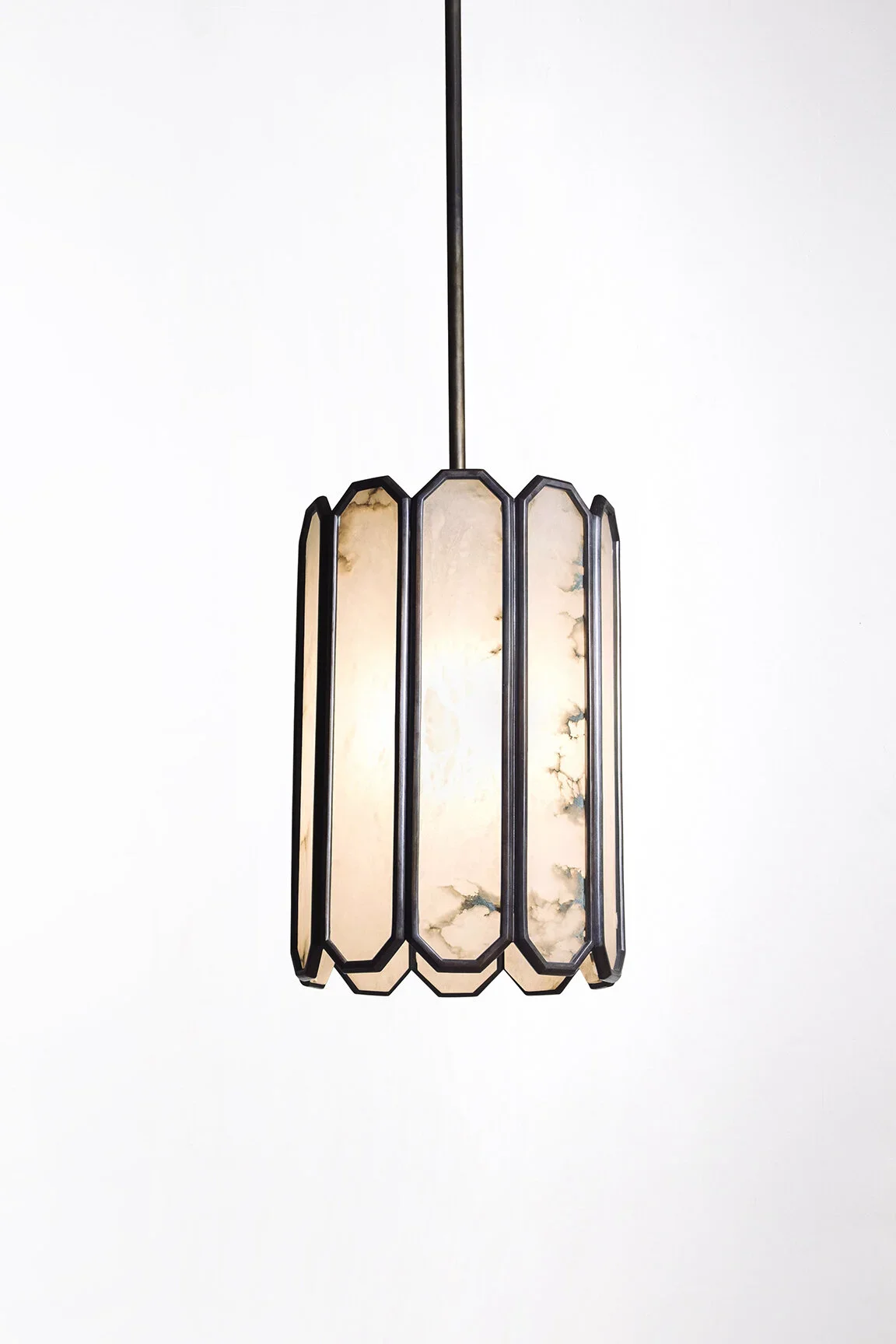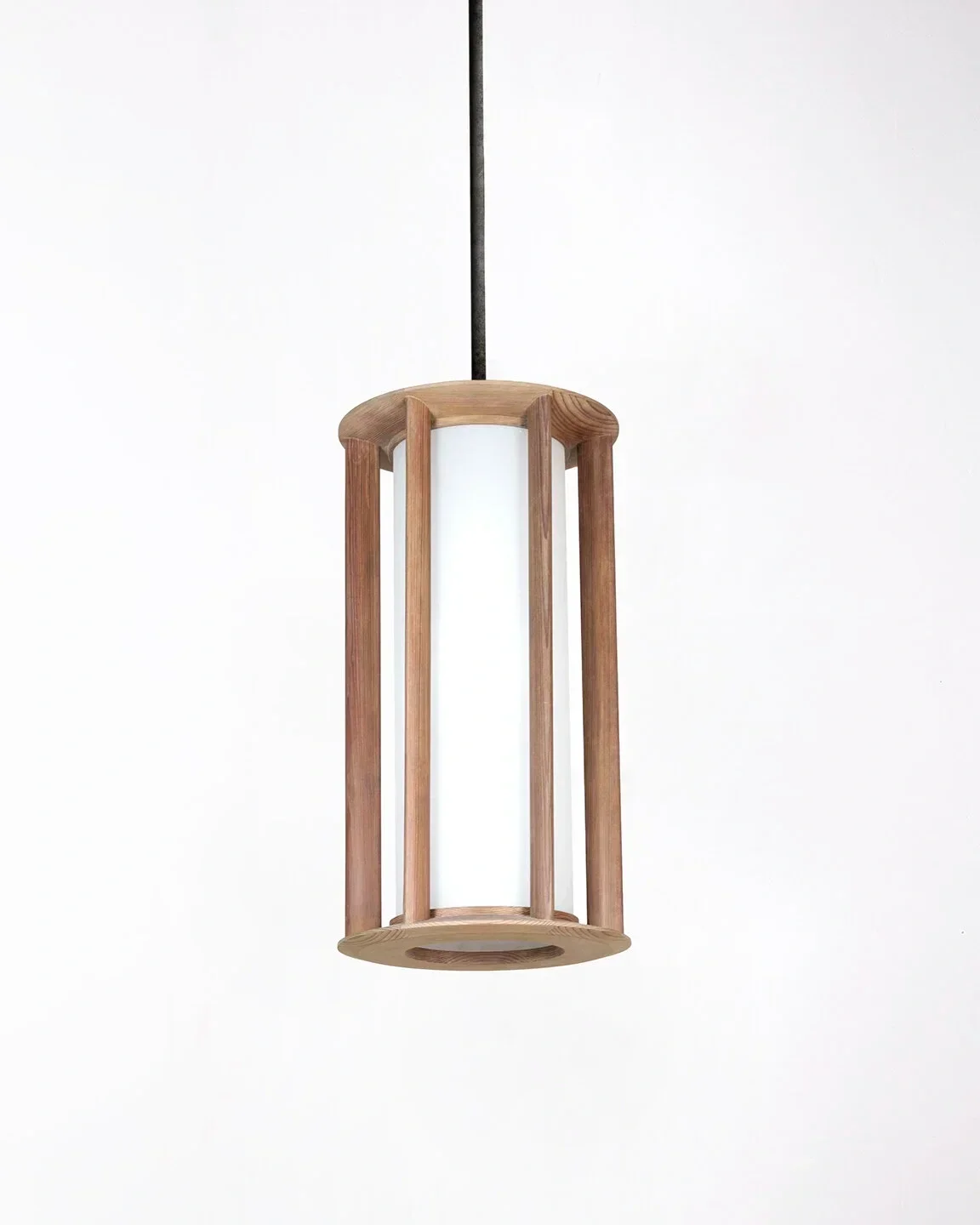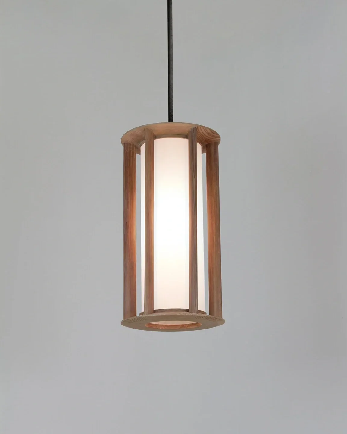 Lantern in wood, sandblasted glass, and patinated brass structure. Each piece is numbered and signed.