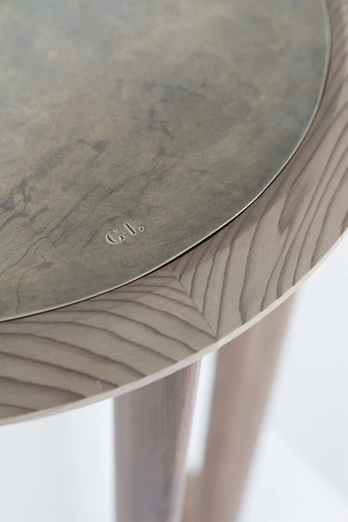 Wood, Patinated Brass + Glass