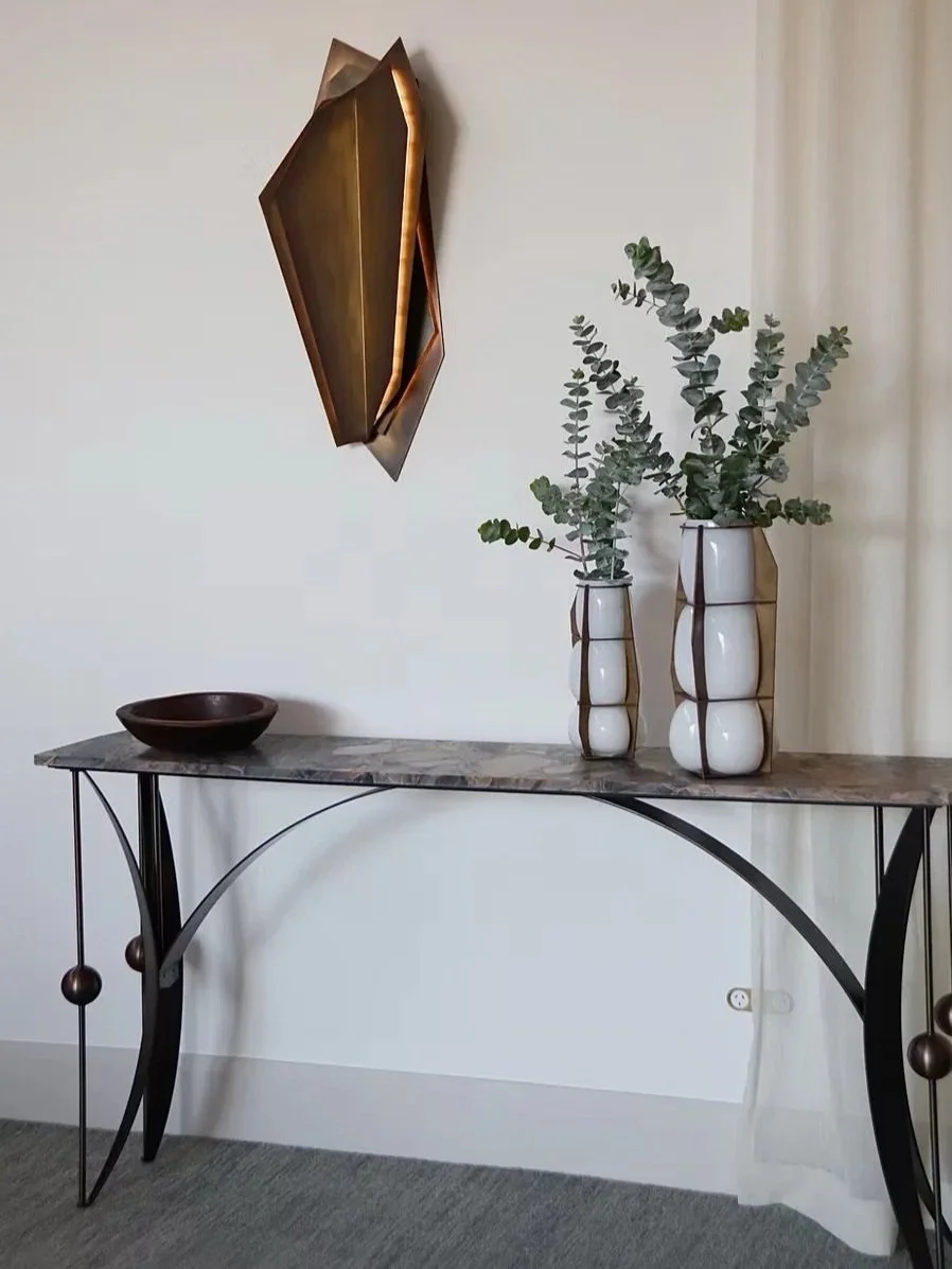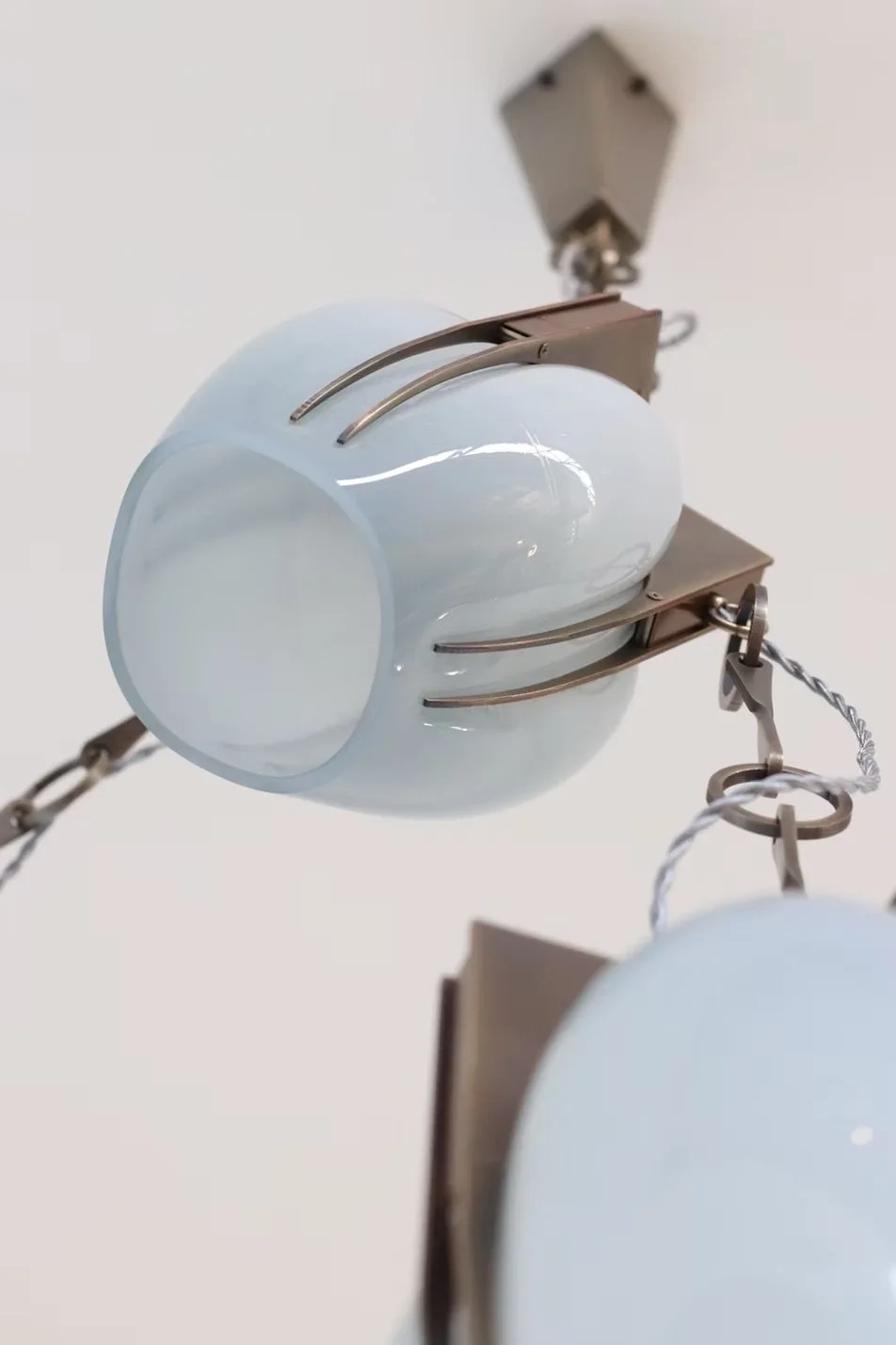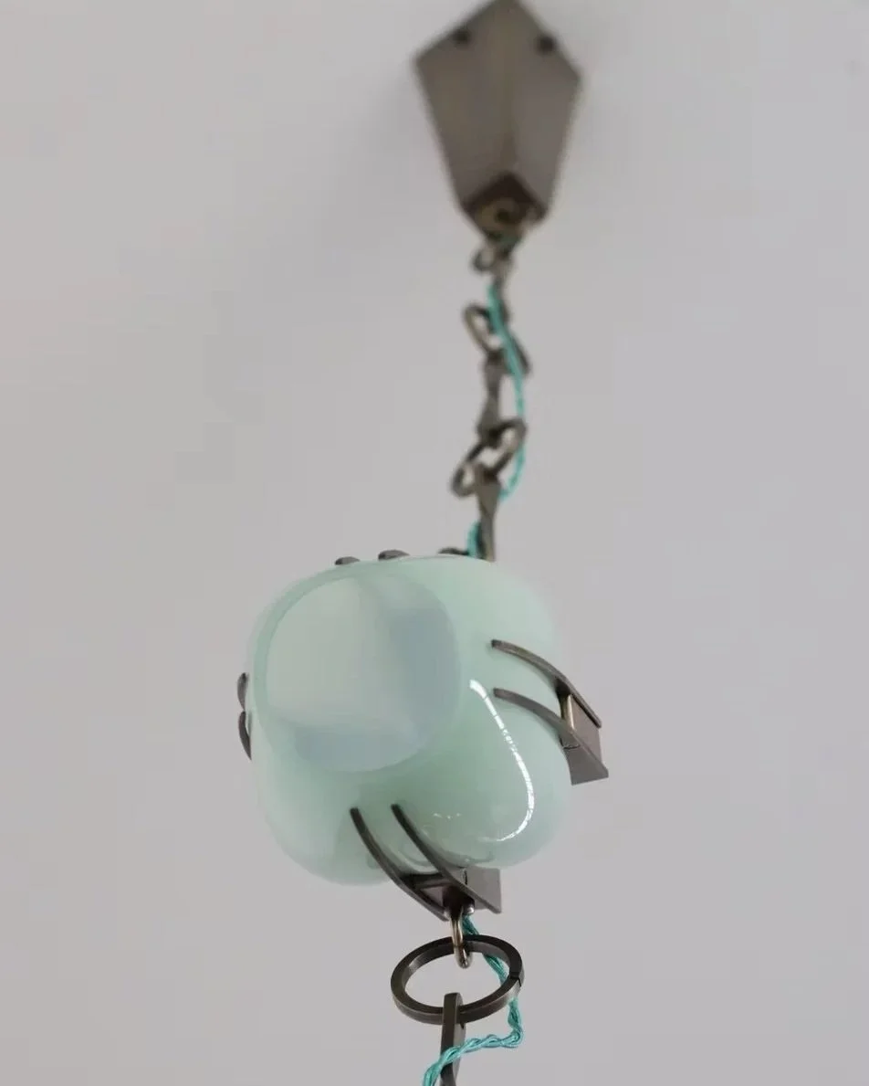 With brass claws clasping onto cage-blown glass, Aegis Chain references the Ball and Claw motif.
