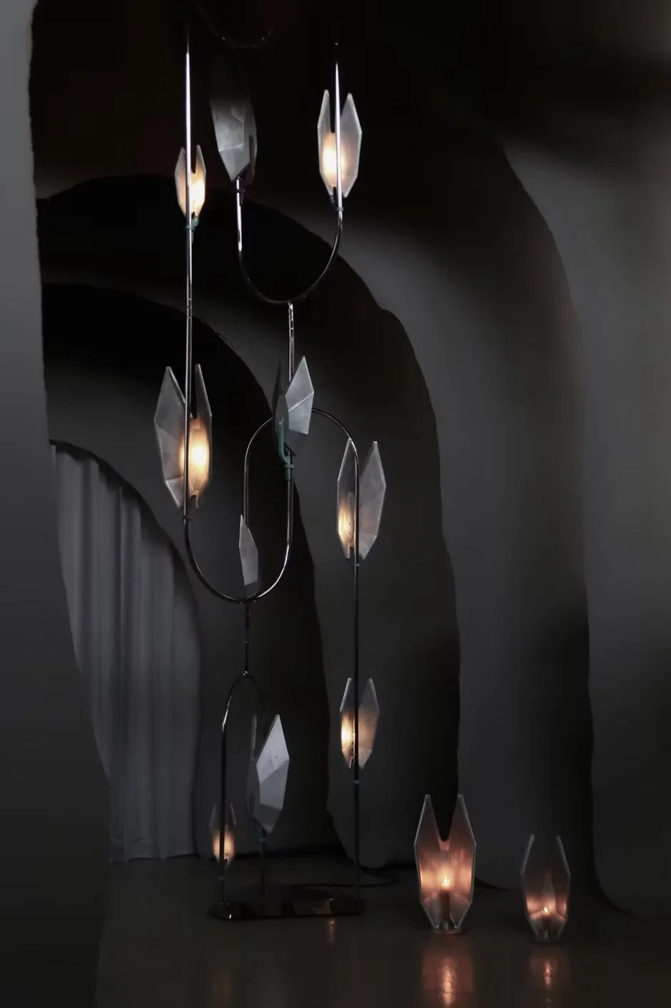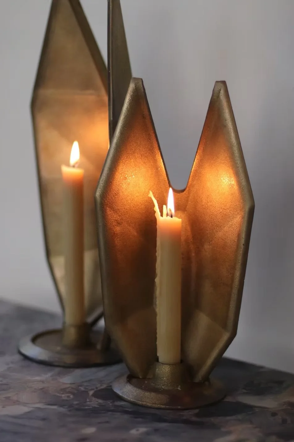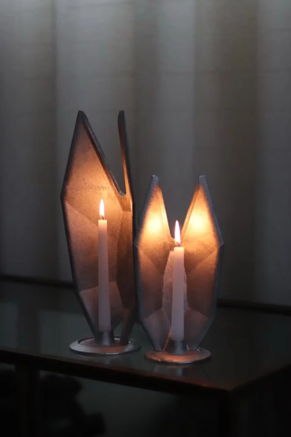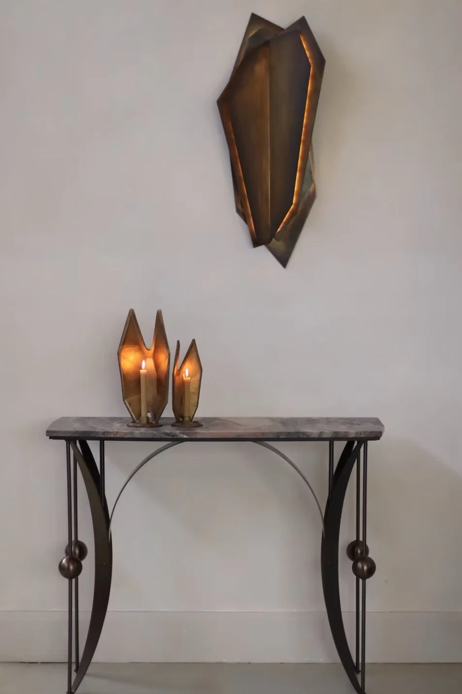 Carapace is a collection of lighting products—both flame-source and electric—drawn from the dual inspiration of antique candle reflectors and the form of a turtle's shell.