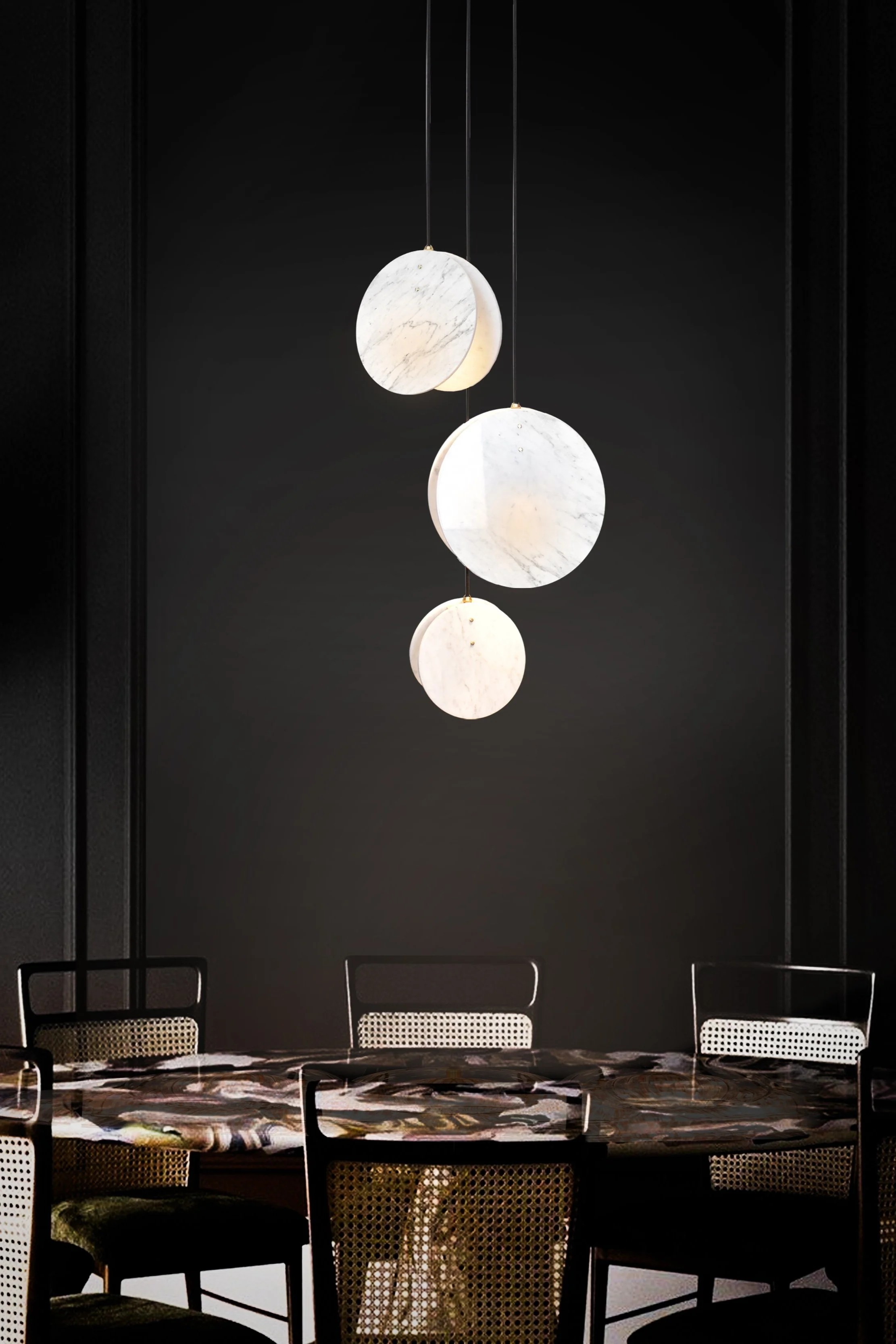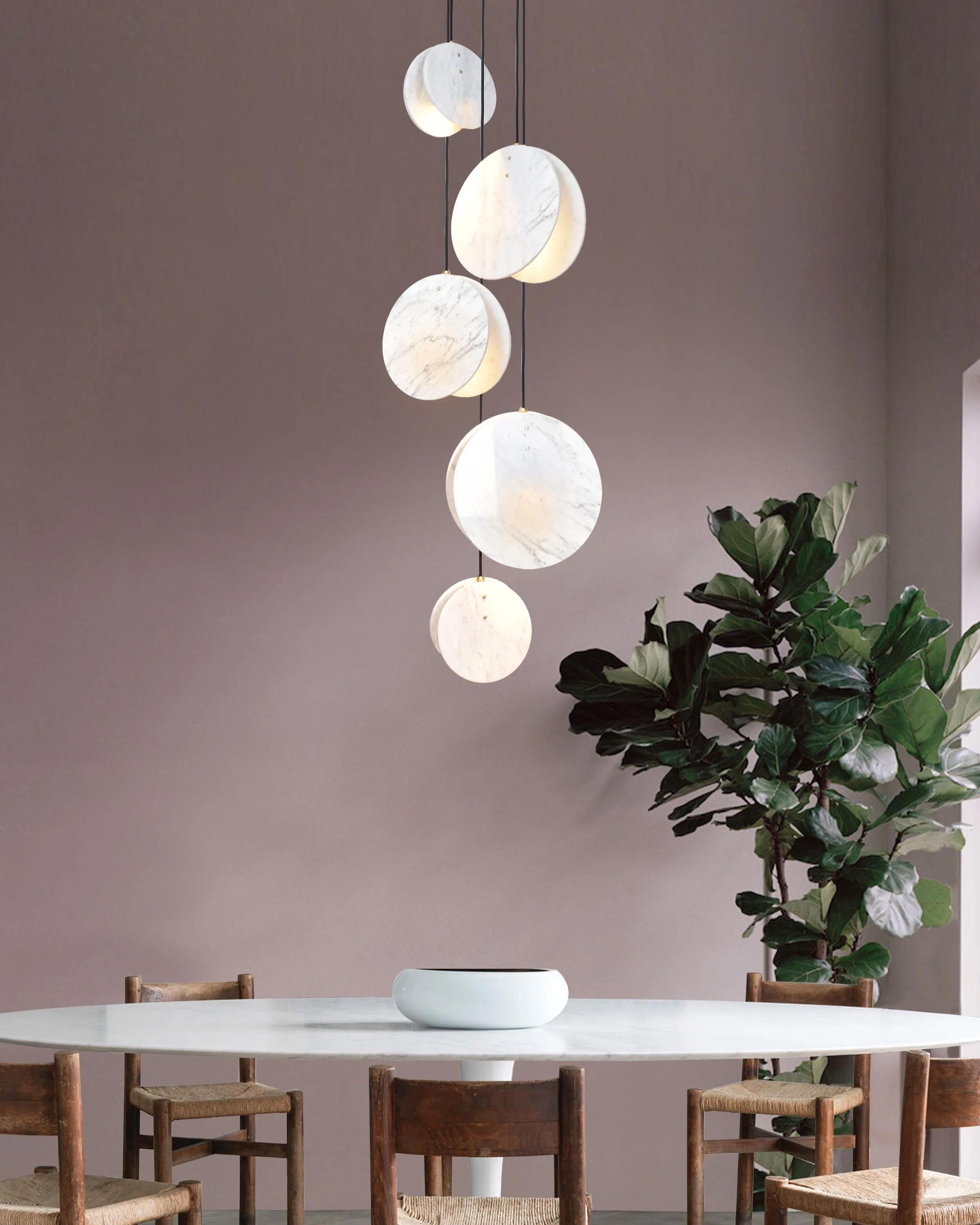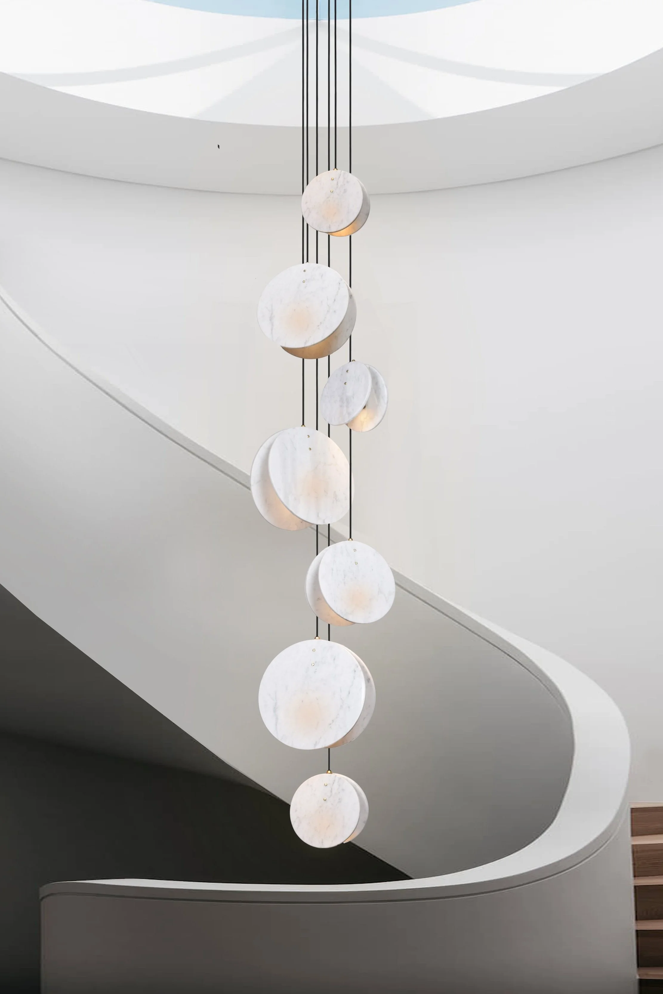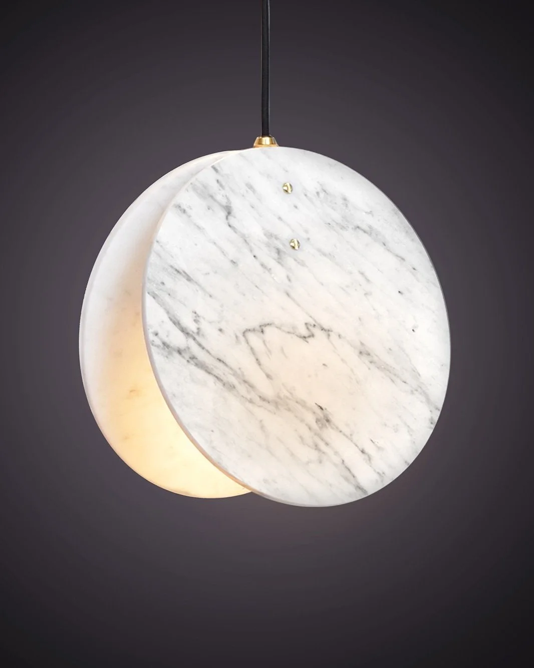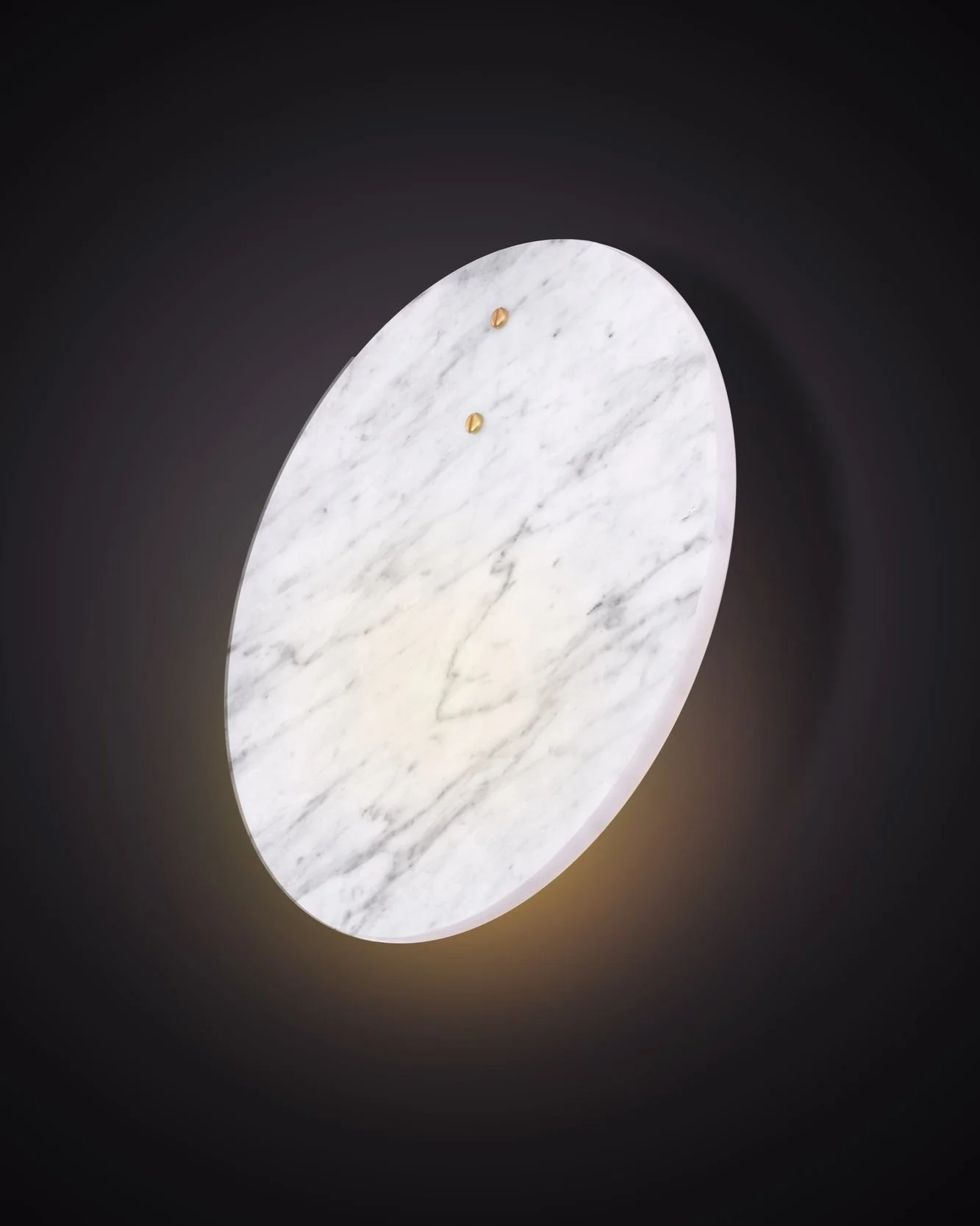 Shell, inspired by the studio’s love for the British coastline and beaches. Made from a solid brass lamp housing, enclosed in two Carrara marble discs to create a soft, directional light source.