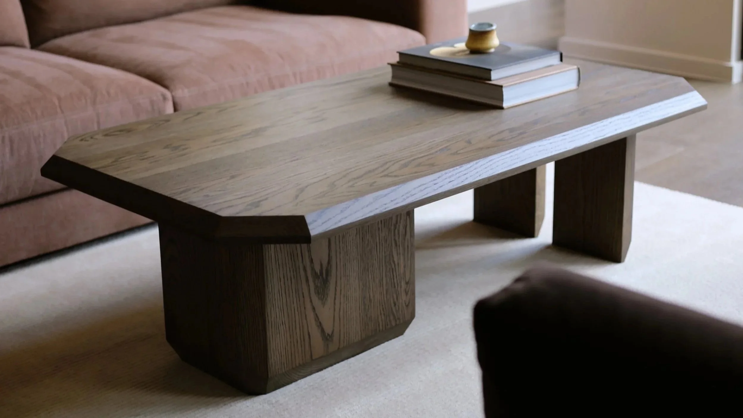 Architectural, geometric, functional. Inspired by post-war brutalism’s vision of simplicity and strength of form. A low table to make a statement in any room. Built and finished by hand in central Texas.