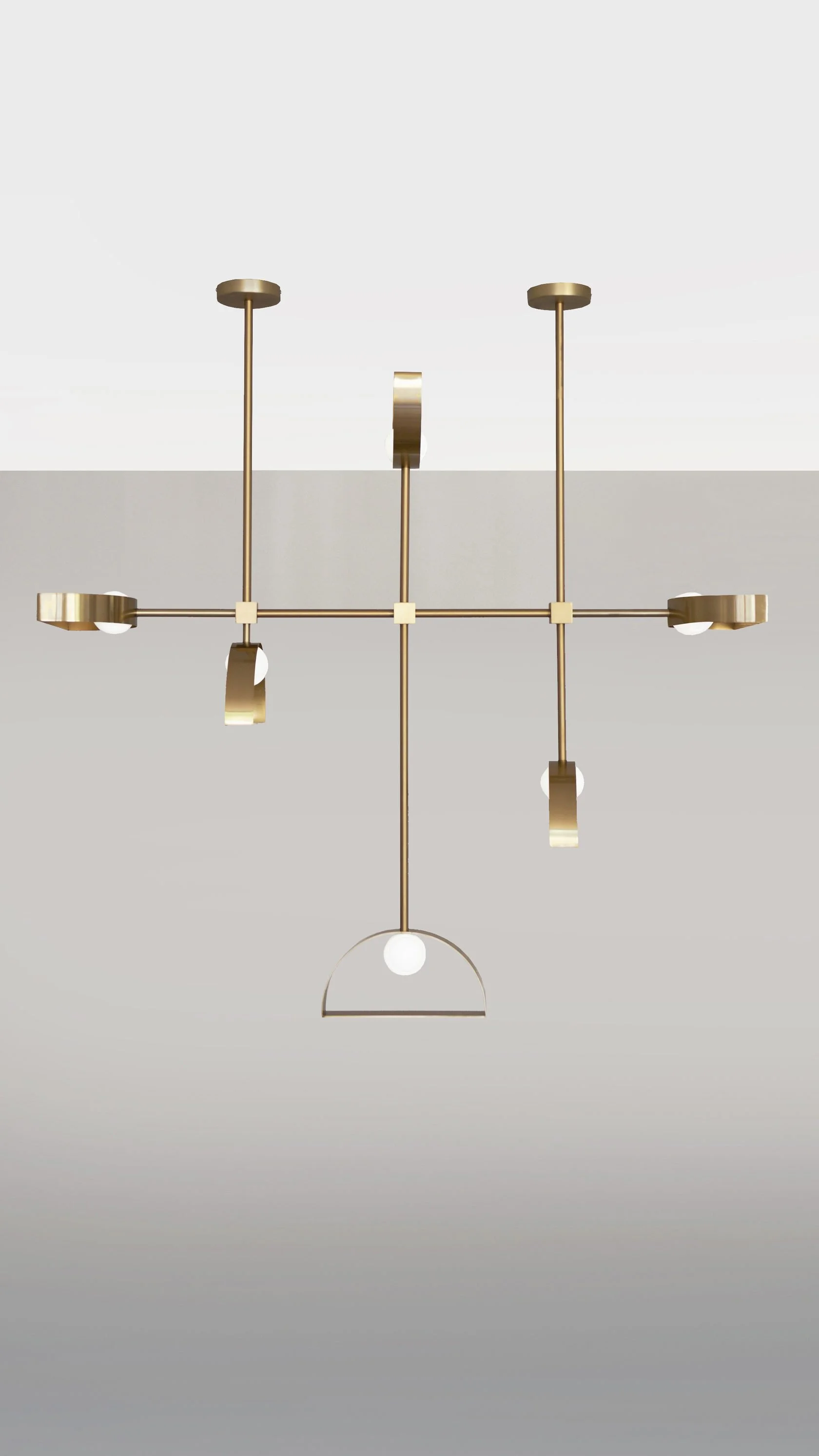 This unique pendant light is designed from three geometric forms: a cylinder, a glass globe and an extended cut semi-circle. The metallic semicircular belt outlines the curvature around the glass globe underneath whilst a cylindrical disc completes the structure of the pendant. The light itself is crafted from a light bronze finish and opaque glass.