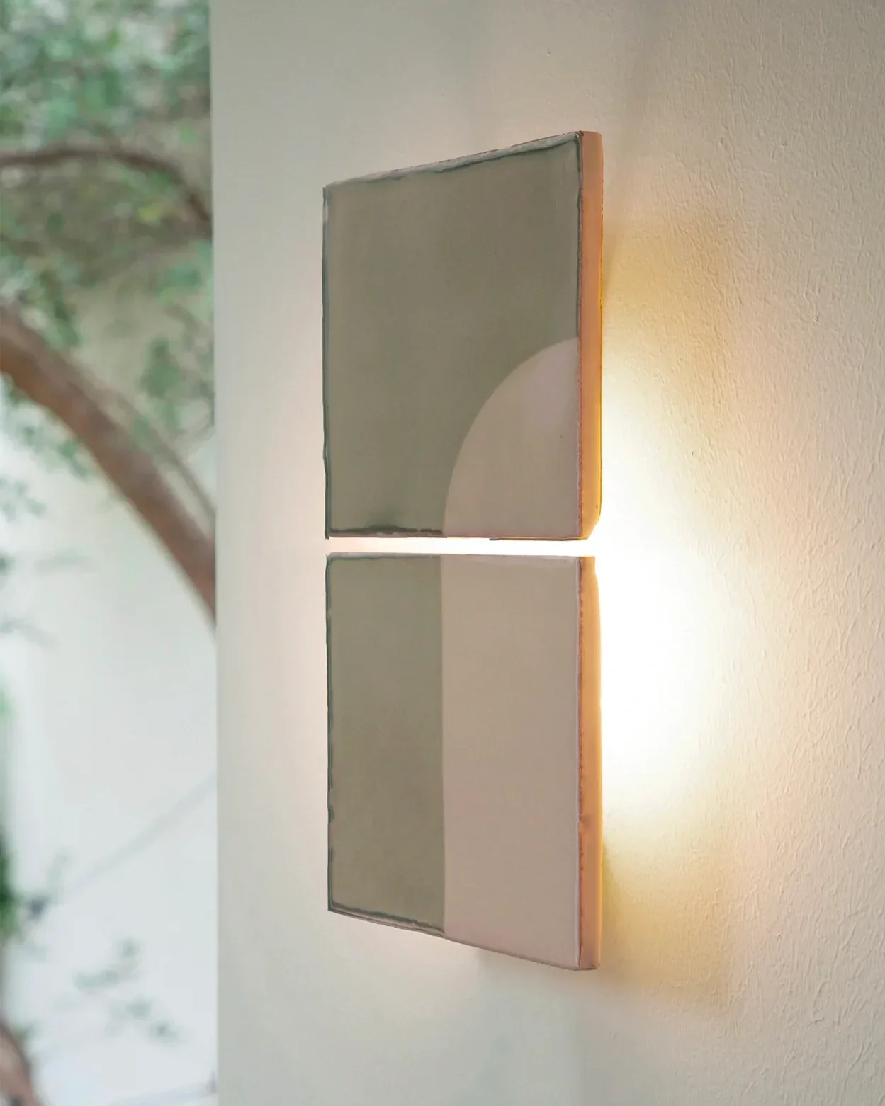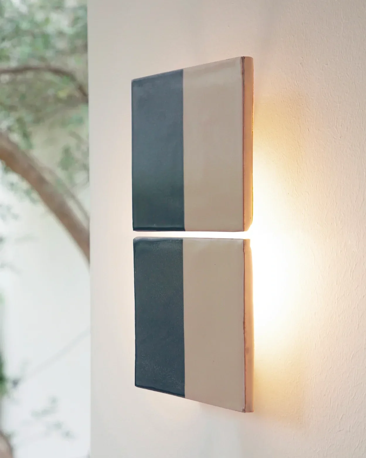 As the Tiles are produced by hand, each wall light is unique, with color variations and imperfections that highlight the charm of artisanal production.