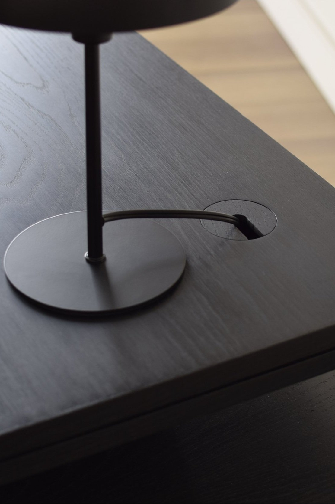 Designed with meticulous attention to detail, this desk features advanced cord management solutions ensuring a clutter-free workspace. The adjustable shelf area boasts strategically placed grommets that connect to the hidden power bank, providing seamless connectivity while maintaining the desk’s minimalist aesthetic.